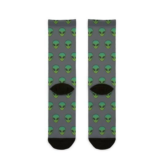 Alien Print Sublimation Crew Socks - Whimsical Socks for Sci-Fi Lovers, Unique Gifts for Holidays, Fun Fashion Accessories