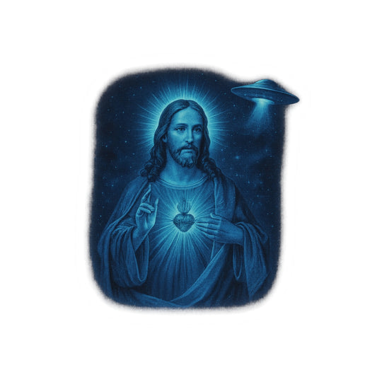 Galactic Jesus Kiss-Cut Stickers, Spiritual Decor, UFO Art, Cool Laptop Stickers, Religious Gifts, Outer Space Theme