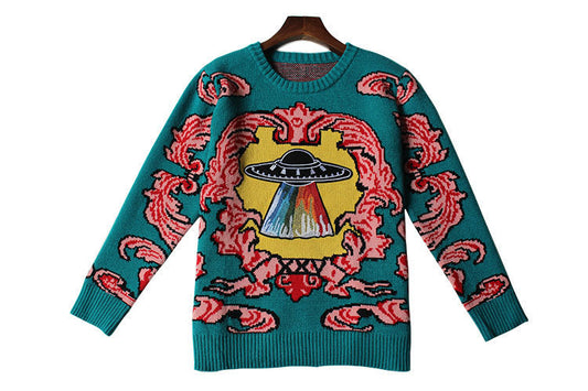 🧶 Vintage UFO Jacquard Sweater – Stay Warm, Stay Weird