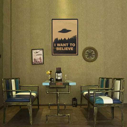 “I Want to Believe” UFO Kraft Poster – Classic Forest Scene