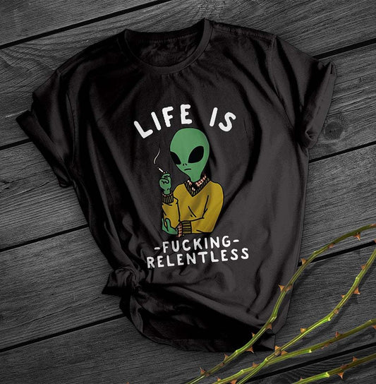 👕 Distressed Alien Print Tee – Worn-In Wisdom, Wired to the Stars
