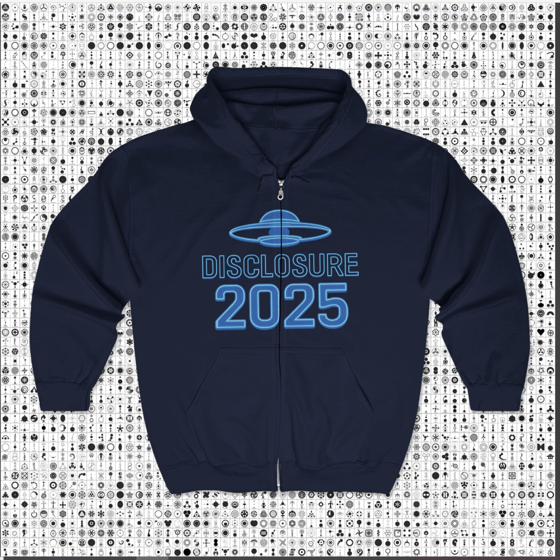 Alien Disclosure 2025 Zip Hoodie, Unisex Hoodie, UFO Lover Gift, Sci-Fi Apparel, Conspiracy T-Shirt, Cozy Sweatshirt